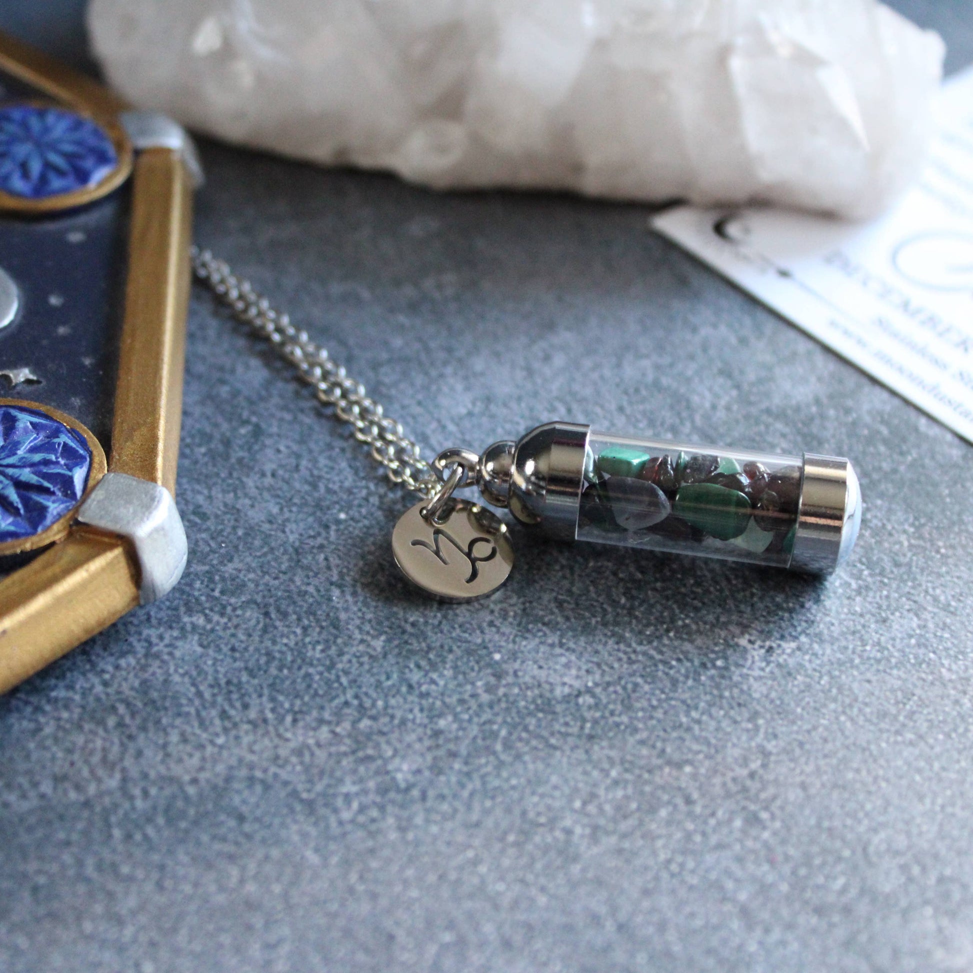 Capricorn Crystal Vial Necklace, Zodiac Astrology Gift